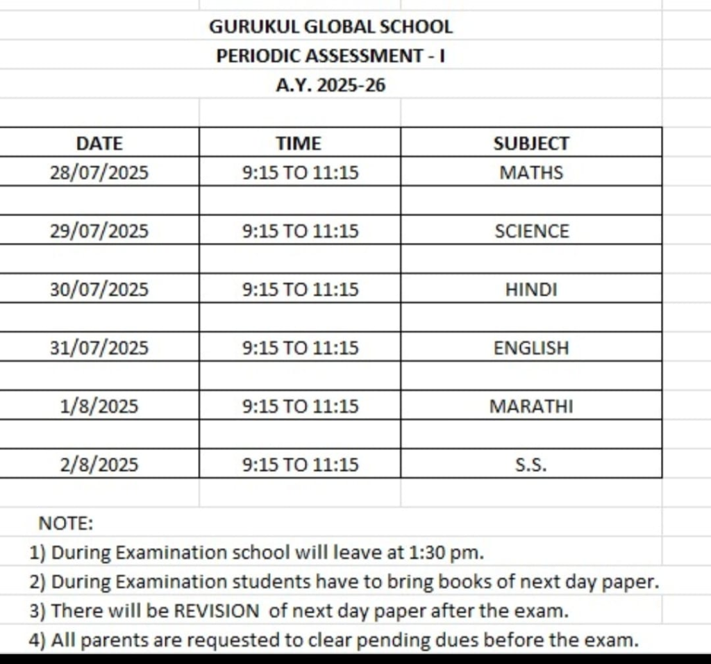 Parents are requested to clear all pending school dues till Thursday, 13th Nov. 2025.
