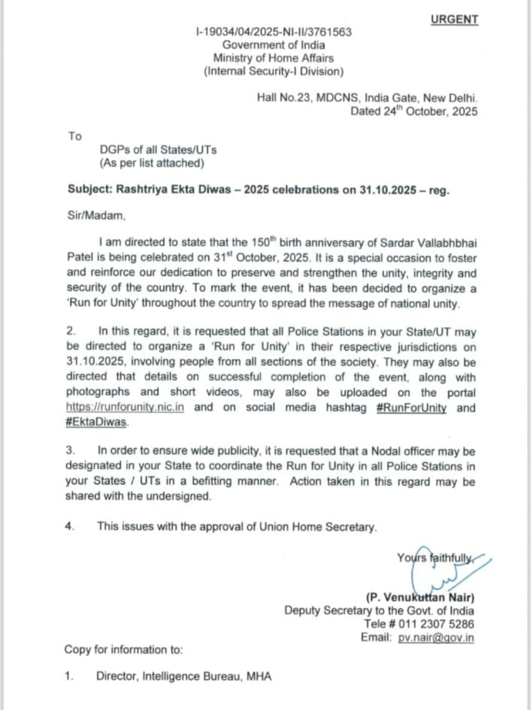 वरील पत्राचे अनुषंगाने वाडा पोलीस ठाण्याचे वतीने दि ३१/१०/२५ रोजी सकाळी ७ः३० वा वाडा येथे रन फॅार युनिटी चे आयोजन करण्यात येत आहे. पाचवी ते दहावी मुलं मुली यांसाठी २ किमी चे नियोजन करण्यात येत आहे.